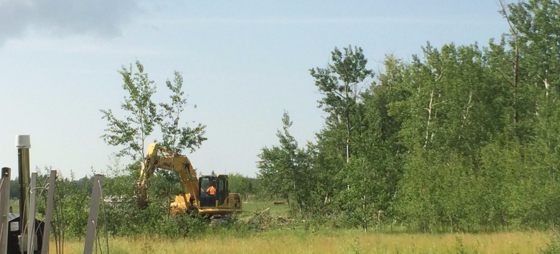 Today the squeaking bulldozer has been pushing the top soil off and building a hill. At first I didn’t like it obstructing my view, but now that it is forming, it is pretty cool to have a hill in the prairies, it will add interest and diversity to my land.